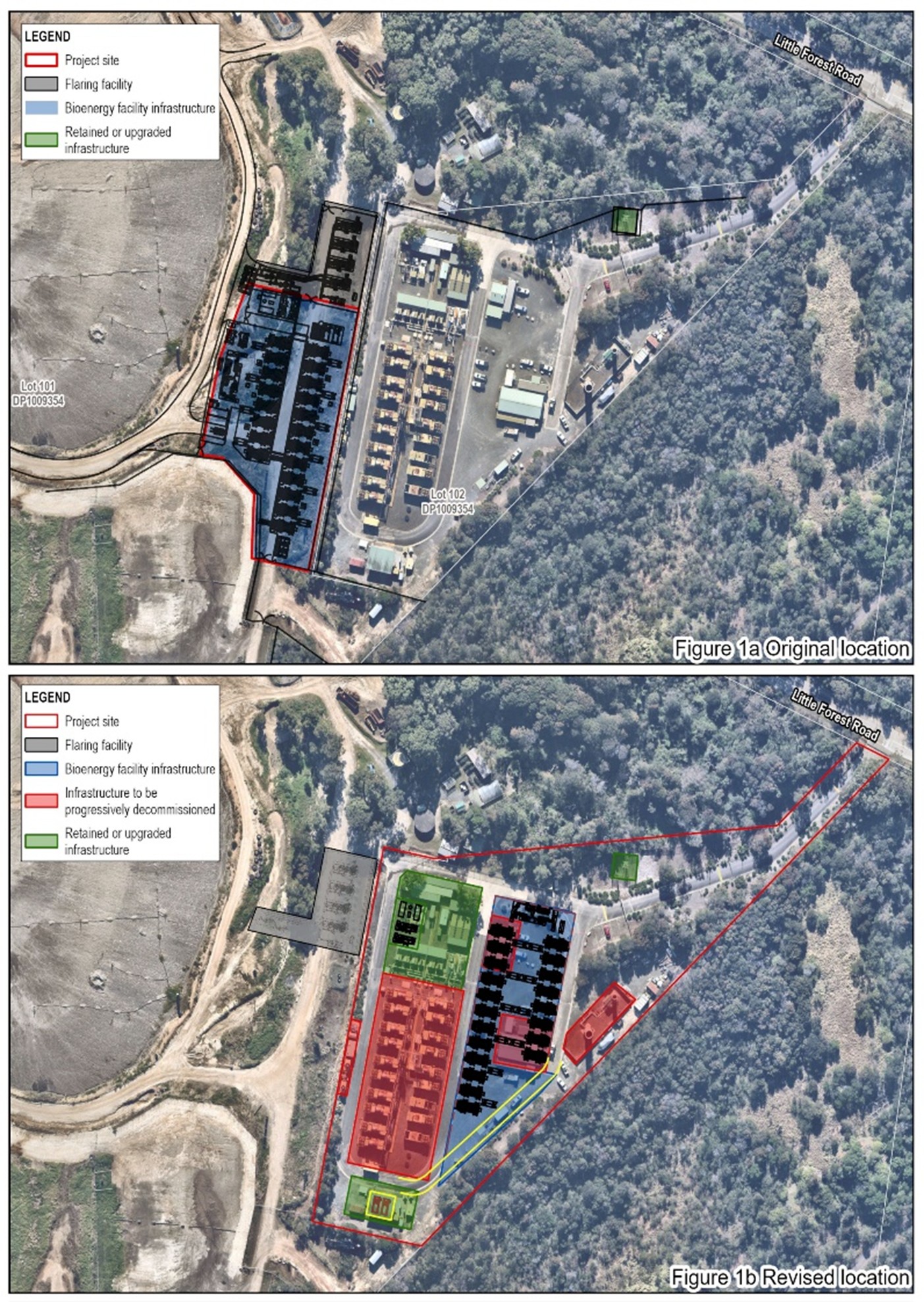 The Bioenergy Facility was initially proposed to be situated along the western boundary of the existing power station adjacent to the landfill and planned parklands. However an opportunity was identified to relocate the proposed footprint to the existing power station site itself. The relocation offers improved integration with the existing gas infrastructure and provides greater seperation from future open space parklands. Figure 3 shows the original and revised locations for the development. The EIS application will address the impacts of the revised location.